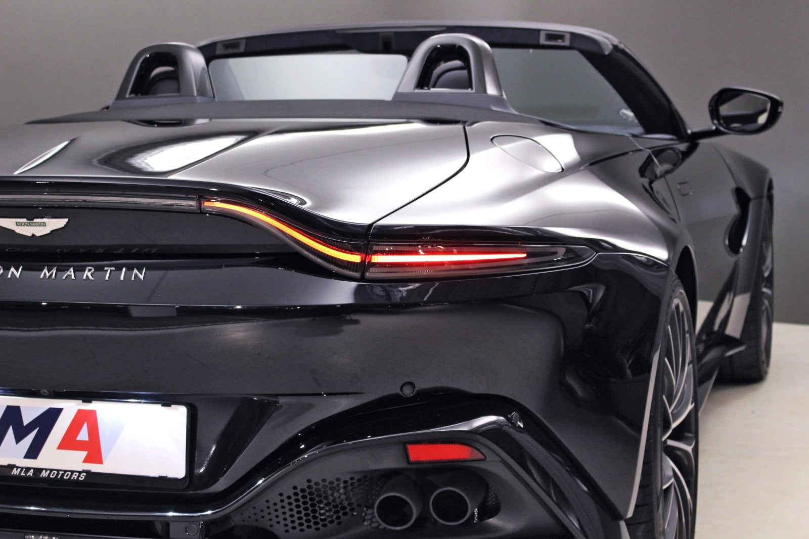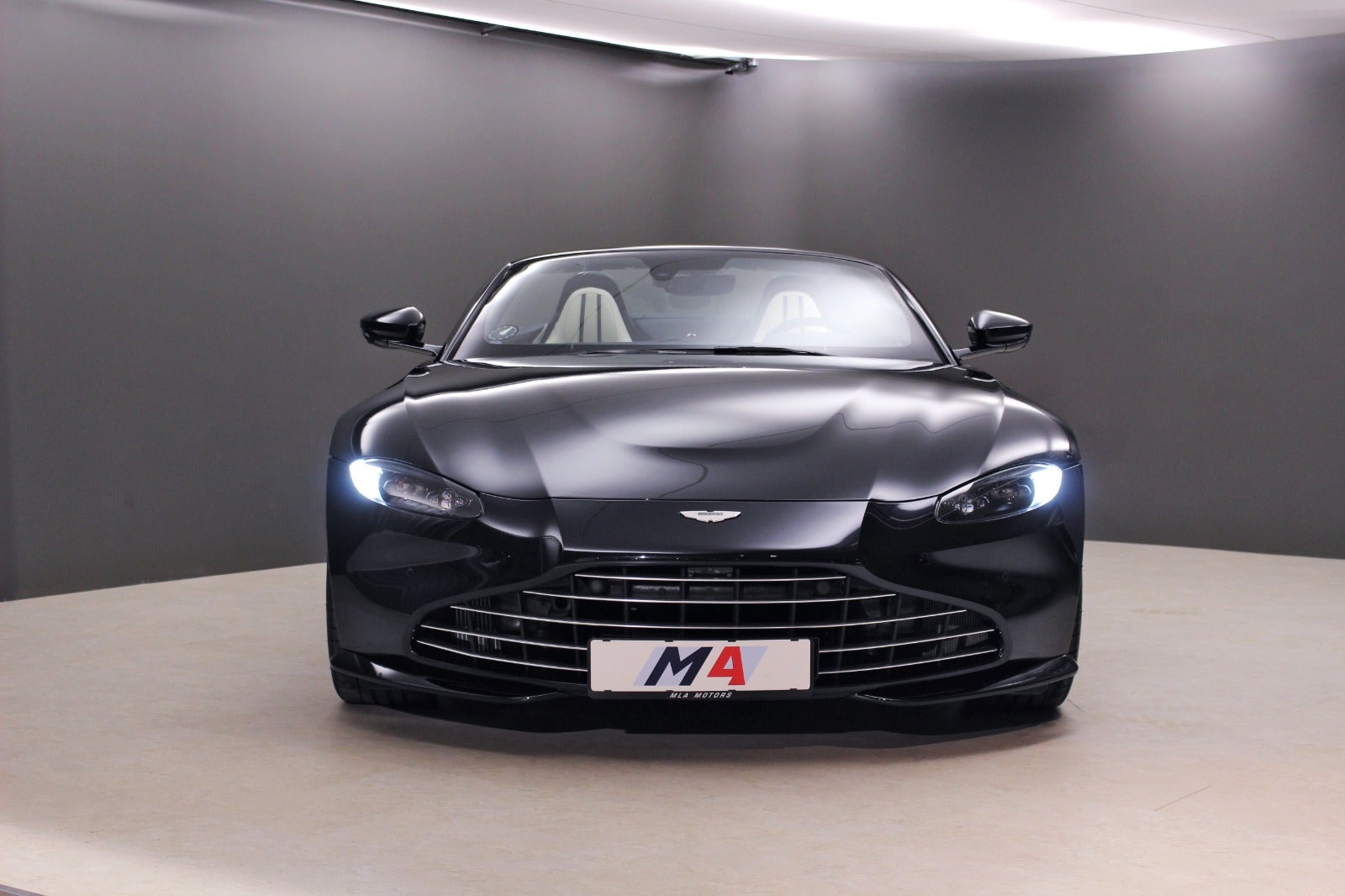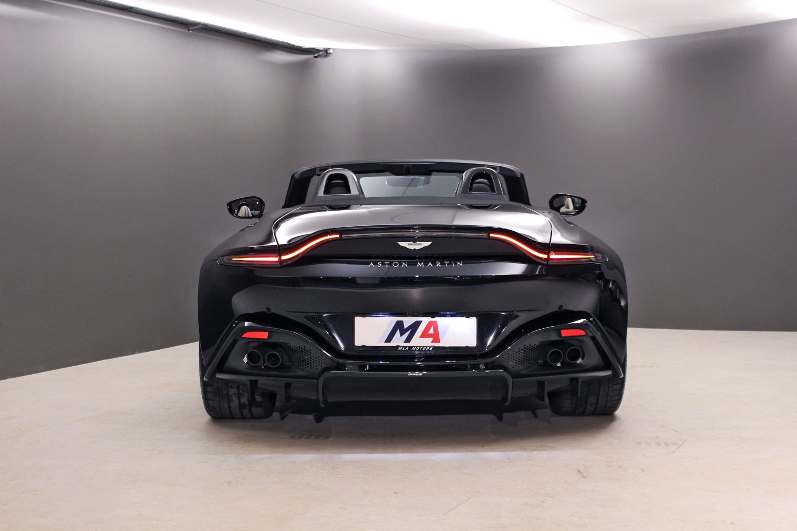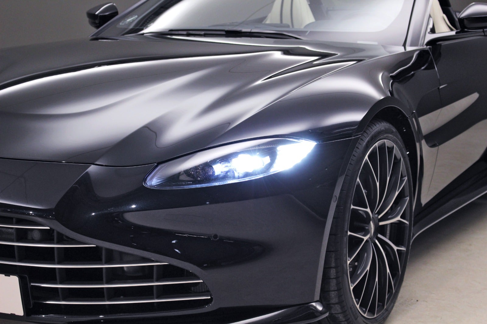 Aston Martin Vantage 4,0 Roadster (510 HK) i Ultramarine Black med Satin Dark Chrome Jewellery Pack interiør & sort kaleche.
