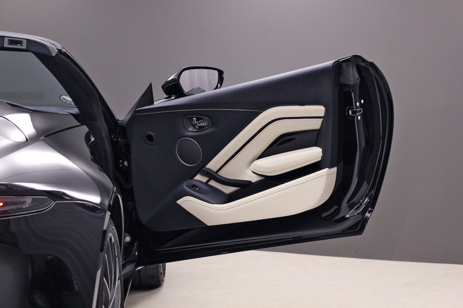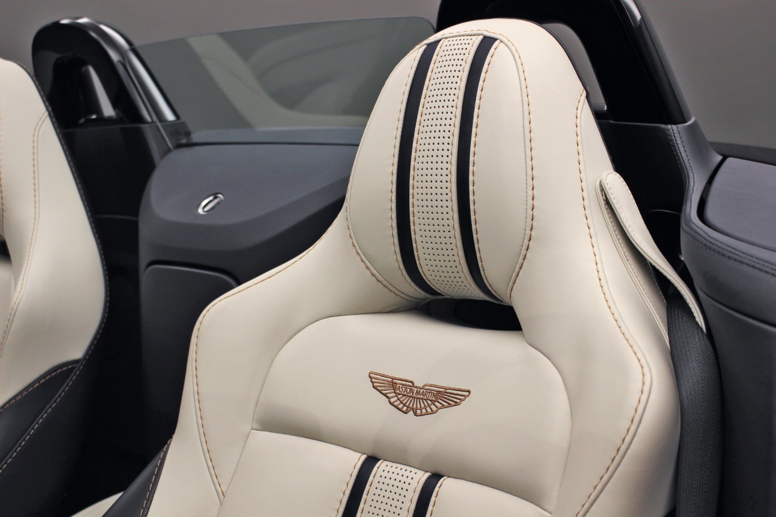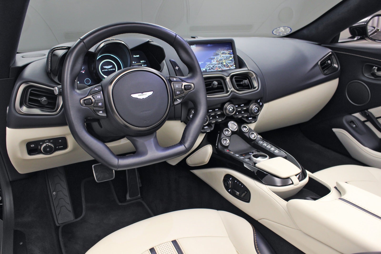 Alcantara loft, Key-less go/entry, Sportsudstødning, Regnsensor, Adaptiv styring, Broderet Aston Matin logo i sæderne, 16-vejs sæder m.m.