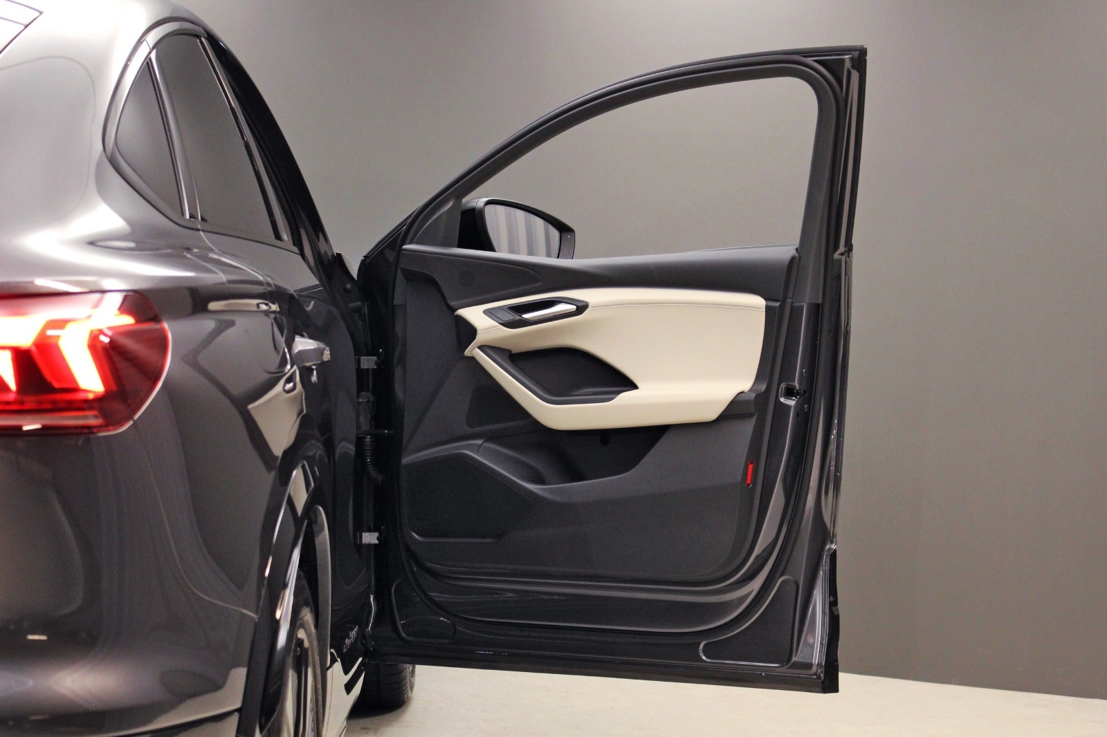 Audi Q6 e-tron Sportback e-tron (306 HK), i Daytona grå med beige læderkabine. 5-års fabriksgaranti inkl.