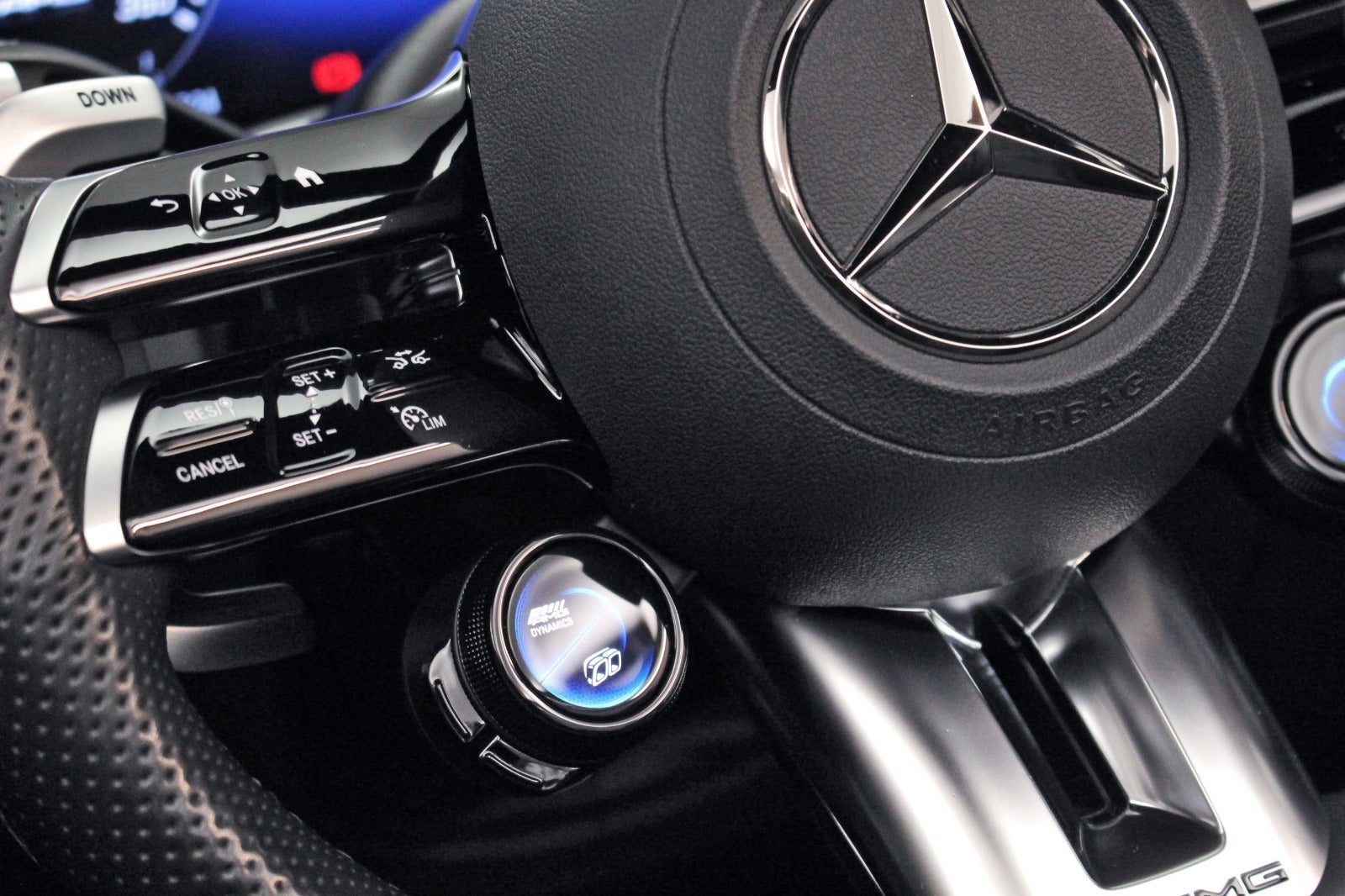 Justerbar undervogn, AMG rat med varme, Aktiv lane-keep assist, Sidespejle med elektrisk ind/udklapningsfunktion, Vejskiltgenkendelse, Magic vision, Ambient kabinebelysning, Memory pakke foran, Apple carplay & Android auto m.m.