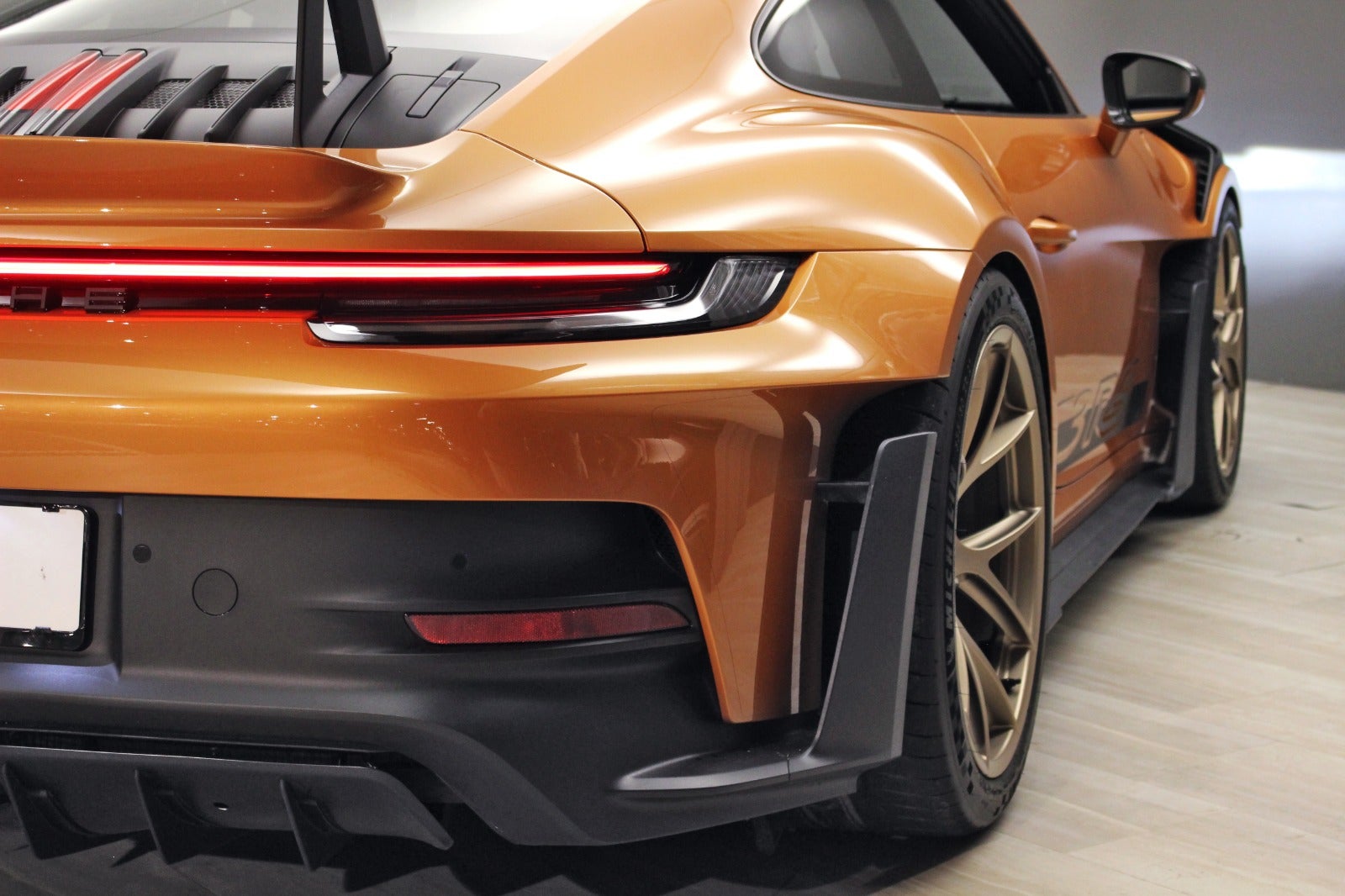 Porsche 911 (992) GT3 RS 4,0 Coupe PDK 2d 525 HK, i farven Nordic gold metallic med Weissach pakke.
