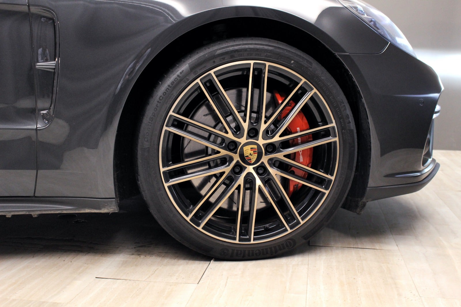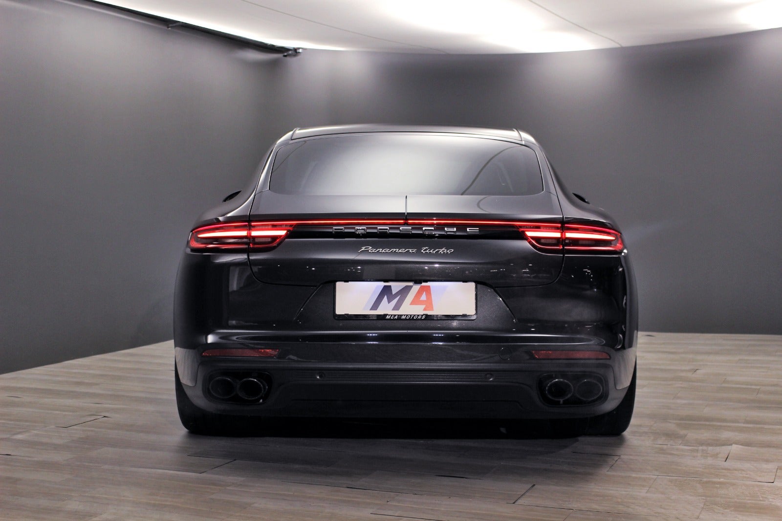 Porsche Panamera Turbo (550 HK) I Vulcano Grey metallic med sort kompletlæder kabine.